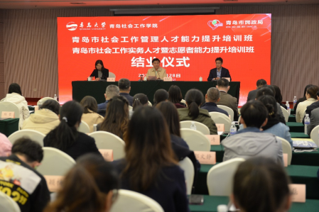 承办的青岛市社会工作管理人才、实务人才暨志愿者能力提升培训班于10月25日至28日在青岛社会工作学院举行。