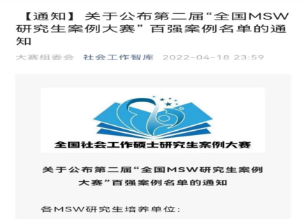2022年4月18日,在全国社会工作专业学位研究生教育指导委员会主办的第二届“全国MSW研究生案例大赛”中,中国AV