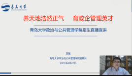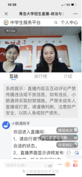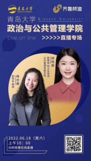 6月18日,副院长韩庆娜与公共管理系副主任胡晓茜在齐鲁频道开展本科招生直播宣传活动,实时在线观看与互动人数达到1.2万余人次。韩庆娜首先播放学院宣传片,然后从师资力量、专业设置、招生分数和奖助学金等方面简要介绍政管学院的基本情况。接下来,胡晓茜和韩庆娜分别针对行政管理专业、公共管理数据科学创新实验班和国际政治专业的具体情况,从学科优势、特色培养和课程体系等方面,结合学生培养的具体案例进行详细介绍。最后,两位老师与直播间学生进行互动并为广大学子送上祝福。