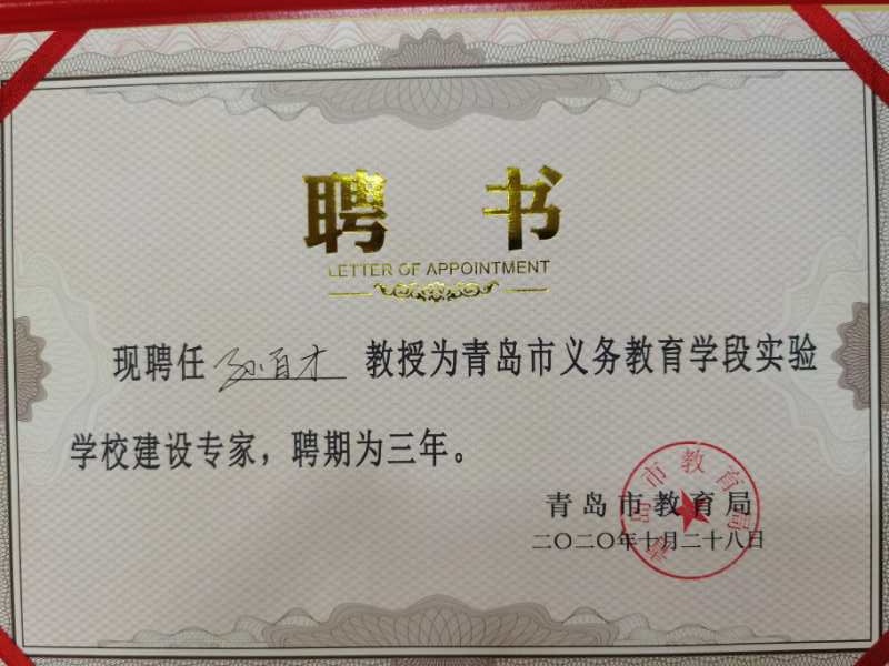 中国AV 孙百才教授被聘为青岛市义务教育学段实验学校建设专家