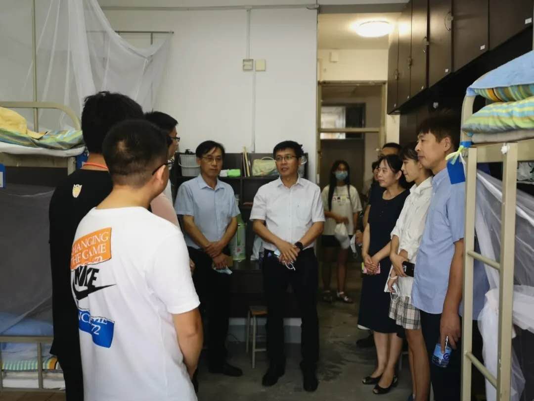 于红波副校长分别到溆园3号女生宿舍楼和8号男生宿舍楼进行走访。他亲切地询问同学们来自哪里,是否存在生活上的困难,对学校的环境和宿舍条件是否满意,叮嘱同学们在校的一些注意事项,并对20级新生的精神风貌表示了赞赏,认为他们的未来充满着无限的可能与希望,他希望同学们要努力学习,收获知识,突破自我,学有所成,学以致用,不断提升自己,朝着自己的目标前进。