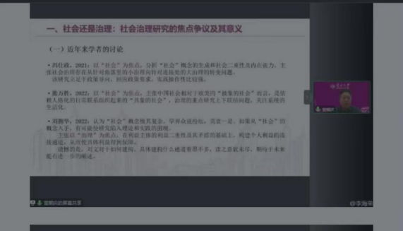 本次讲座从中国学术界热议话题入手,由现实回溯历史、由历史裨益现实,大量引经据典,以中国历史文化中的本土概念对话当今现代学术与行政实践概念,是构建中国式学术话语体系的生动展现。对社会学系师生突出问题意识、开拓研究视野、提升研究高度有很好的启发意义。