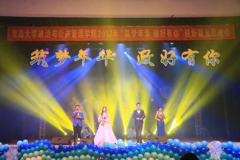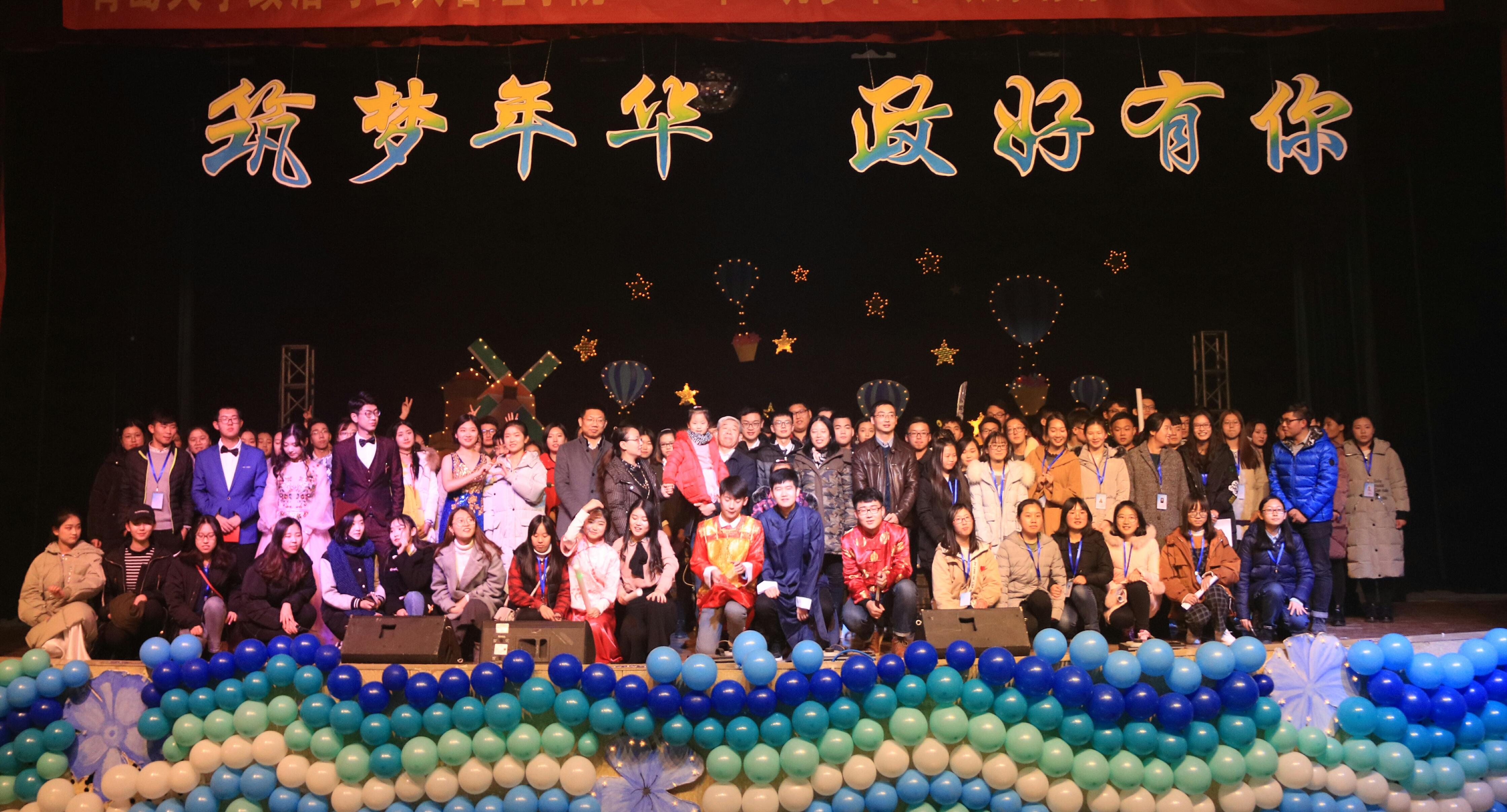 于青大高职礼堂举行主题为“筑梦年华、政好有你”的迎新暨元旦晚会。学院党委书记程济华、院长丁金光、党委副书记隋晓玲、化学化工学院党政办主任李志国,教师陈洪连、韩庆娜、陈平及辅导员孙建华、由飞、徐伟出席此次晚会。