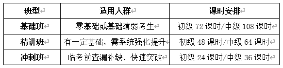 根据考生基础与备考阶段,开设三类班型,满足不同需求: