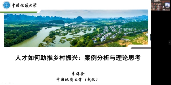 本次报告邀请中国地质大学(武汉)马克思主义学院副院长、博士生导师李海金教授作了题为“人才如何助推乡村振兴:案例分析与理论思考”的讲座,本次报告由学院王猛副院长主持。学院2020级和2021级行政管理管理专业学生共计179人通过线下和线上参加本次报告。