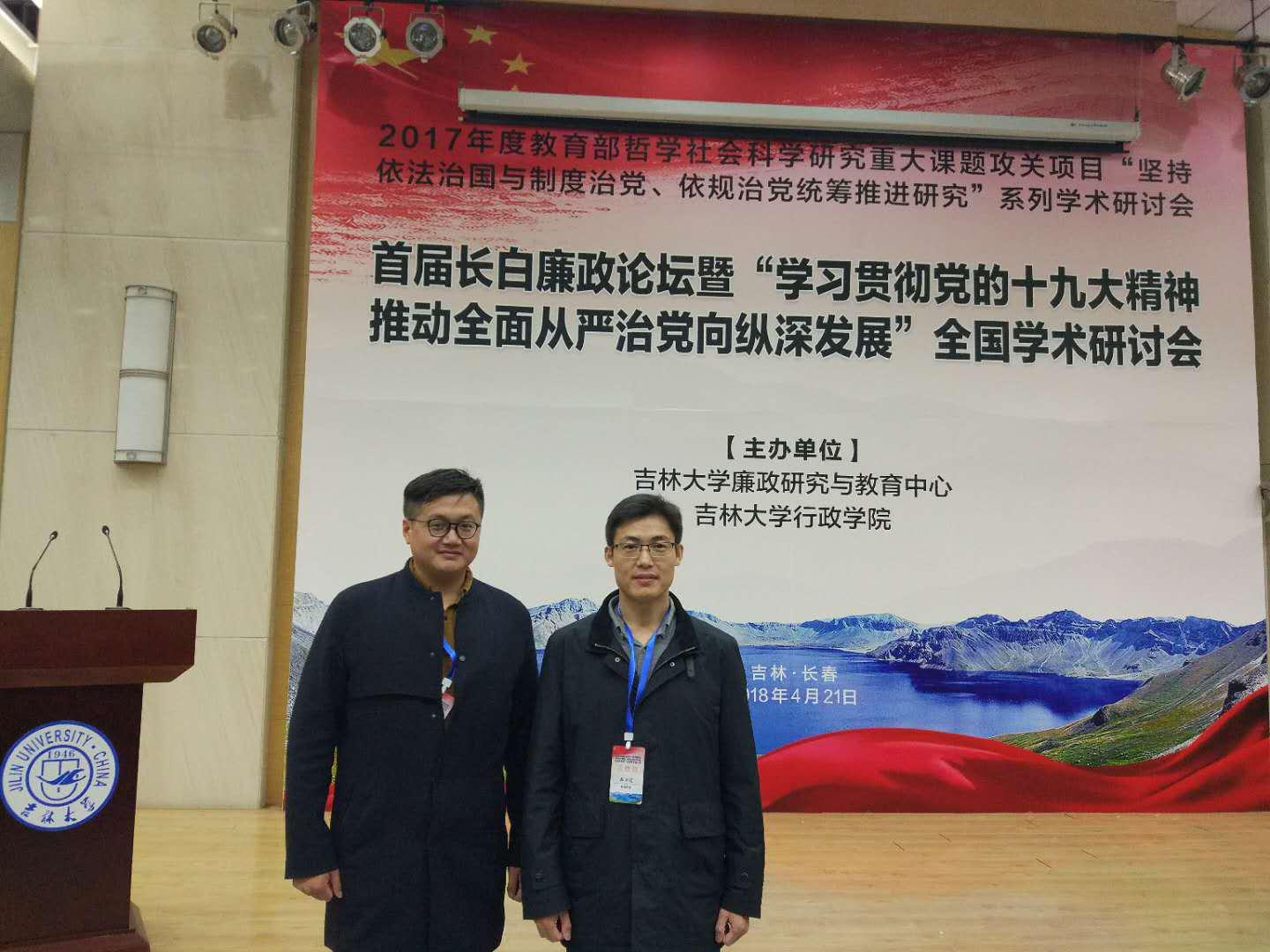 陈洪连副教授、刘方亮博士以及2016级中外政治制度专业硕士研究生王文波同学,共同赴吉林长春参加了由吉林大学廉政研究与教育中心、吉林大学行政学院共同主办的首届长白廉政论坛暨“学习贯彻党的十九大精神,推动全面从严治党向纵深发展”全国学术研讨会。