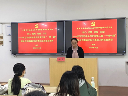 徐伟通过“初心、成果、经验、行动”四个关键词带领与会学生回顾了习近平总书记在第三届“一带一路”国际合作高峰论坛开幕式上的主旨演讲。一是不忘“初心”,“一带一路”以互联互通为主线,其初心是为国际经济合作打造新平台,把我国发展同沿线国家发展结合起来,实现各国的共同繁荣;二是取得“成果”,“一带一路”合作实现了从亚欧大陆延伸到非洲和拉美、从“大写意”进入“工笔画”阶段、从硬联通扩展到软联通的三个转变;三是总结“经验”,总结出人类是相互依存的命运共同体等三大深刻认识;四是积极“行动”,宣布支持高质量共建“一带一路”的八项行动,成色十足、新意十足。
