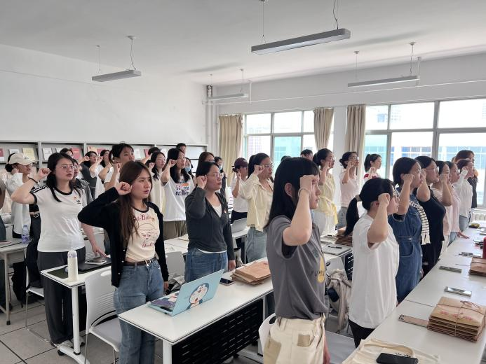 党员代表张晴带领全体毕业生党员重温入党誓词,再忆初心。铮铮誓言激发了毕业生党员内心深处的责任感,促使大家在今后的学习与工作中以党员身份为标杆,用实际行动诠释对党的忠诚与热爱。