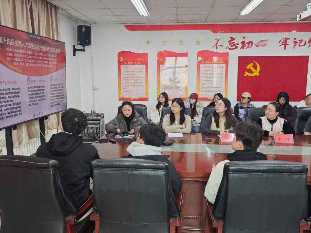 会议伊始,党支部成员茅玲苑带领全体党员同志,认真学习领会党的第十四届全国人大常委会会议精神和2025年中央一号文件。她从“重要决策与立法成果”“人事任免与代表资格审查”“重点议题讨论”三个方面对第十四届全国人大常委会第十四次会议报告进行概括,从“持续增强粮食等重要农产品供给保障能力”“持续巩固拓展脱贫攻坚成果”“着力壮大县域富民产业”等六个关键部分解读2025年中央一号文件。引导同学们主动提升自己的政治理论水平,理解党的路线方针政策,了解国家的发展大局和重点工作,明晰自身责任与义务。