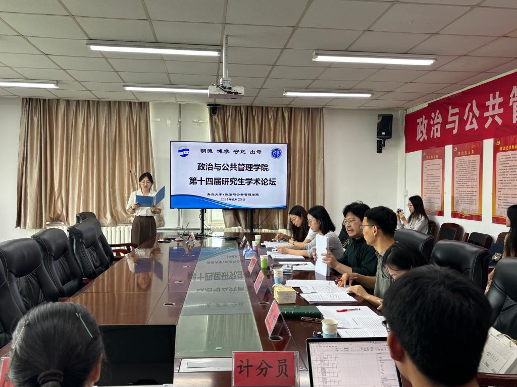 (纪检监察学院)第十四届研究生学术论坛在金家岭校区二号实验楼214会议室顺利举行。本届论坛以“面向新发展阶段的中国式现代化与公共治理探究”为主题,聚焦中国式现代化道路与公共治理领域的重大理论和实践问题,具有重要的现实意义和理论价值。高鹏、许秀瑞、侯秋宇、赵一衡、刘岩5位教师出席并担任评委。经学院初选入围的11篇论文作者和部分研究生参加论坛。论坛由学院研究生会李谭琳主持。