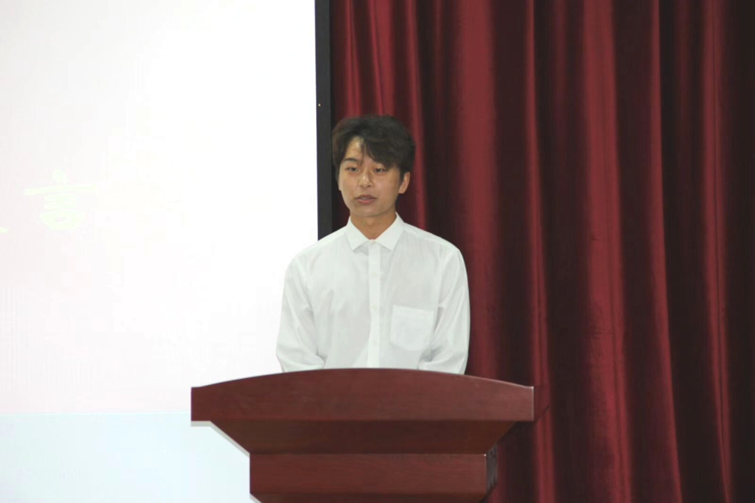 老生代表梁潇舰回顾了自己大学三年来的学习、任职以及实践经历,并结合跟随清华大学的邓晓梅教授参与中华儿慈会基金论坛、担任临沂市郯城县团委兼职团干部、担任青岛市李沧区校园推介官等经历,鼓励新生们积极参加实践、珍惜学习机会、做好自己的大学规划。他希望与学弟学妹们并肩同行,以青春的激情,以初春的生机,以朝日的活力,以利刃的锋芒,在追梦与圆梦的征途中,不断激发斗志,勇往直前。