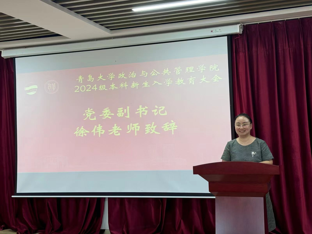 教师代表丛霞告诉大家,大学是学习知识、自我探索、成长蜕变的舞台,新生应当以目标为导向,努力培养自律习惯和批判性思维,善于思考、勇于创新,在尝试和探索中提高认知、拓宽视野。同时,她叮嘱同学们在学会独立担当的同时,珍惜同窗情谊,相互支持、共同成长。