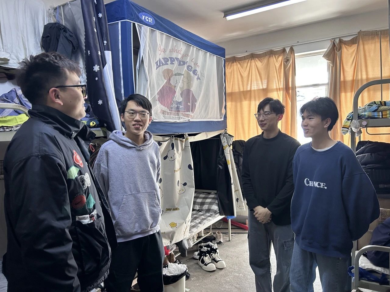 辅导员老师张伟、王嘉伟、商玉坤走访学生宿舍,重点检查消防设施与用电安全。老师们详细询问同学们返校后的生活学习状况,提醒学生做好开学季传染病预防工作,强调“人走断电”、“宿舍禁烟”等安全事项。