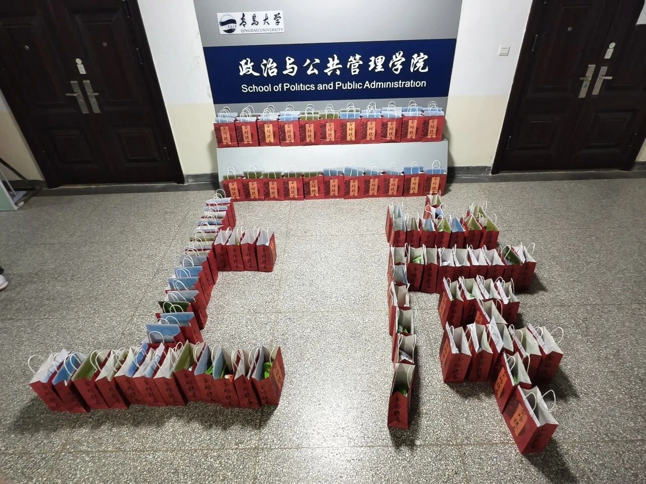 这份祝福凝结于一个个精心筹备的福袋之中:精选的坚果为学子们补充能量;饱满的柿子与橙子,贴着励志的贴纸,愿大家“心想柿橙”;暖宝宝代表温暖常伴;旺仔棒棒糖寓意好运连连;“金榜题名”的定制纸巾以及“前途似锦”盲盒笔,寄托了对同学们考试顺利、鹏程万里的美好祝愿。一份份别出心裁的礼物,承载着学院最诚挚的期盼。