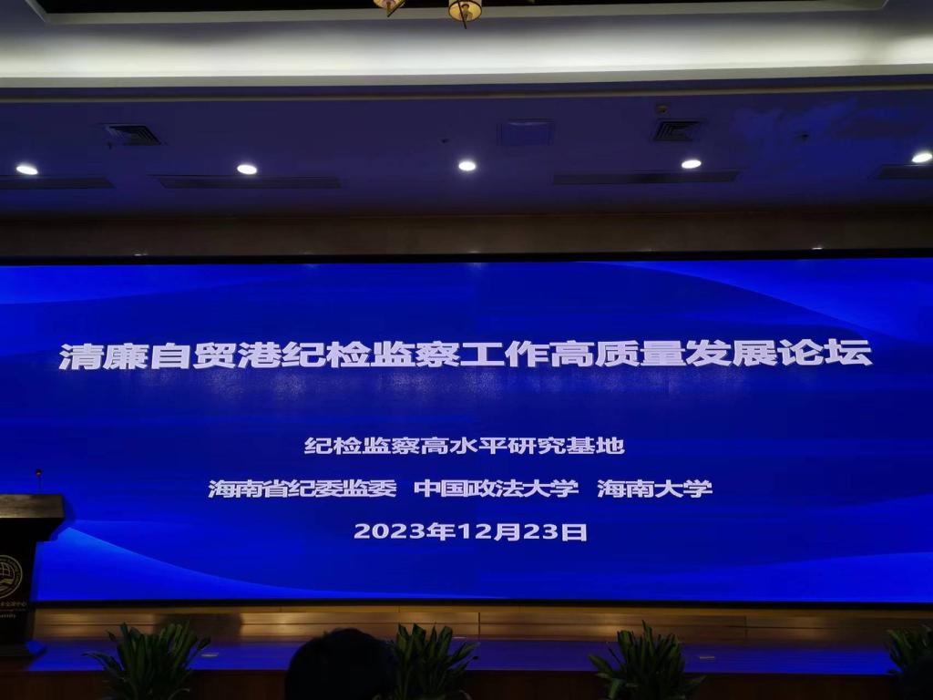 2023年12月23日,陈洪连教授赴海南大学参加由纪检监察高水平研究基地(海南省纪委监委、中国政法大学、海南大学)主办的清廉自贸港纪检监察工作高质量发展论坛。来自全国各地的纪检监察专家学者和海南省纪检监察机关工作人员等参加本次论坛。