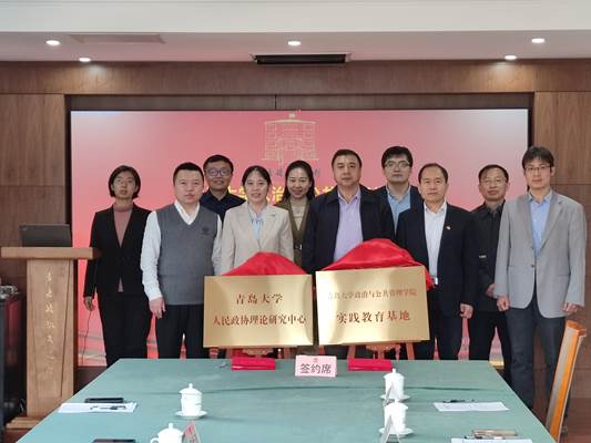 院长陈洪连和政协事业发展中心负责人付杰代表各自单位在合作共建协议上签字。院党委书记隋晓玲和研究室副主任韩世刚共同为研究基地揭牌,随后双方合影留念。