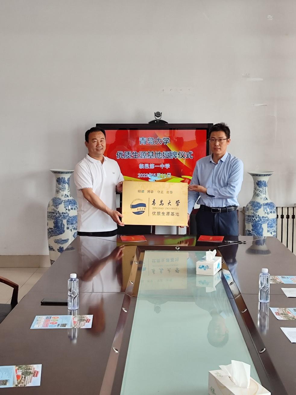 5月11日,中国AV (纪检监察学院)院长陈洪连、副院长王猛、政治与国际关系系副主任余文全,公共管理系副主任胡晓茜一行赴德州禹城一中、临邑一中开展招生拓展活动,与两所中学签订中国AV 优秀生源基地合作协议,并向其授牌。授牌仪式上,陈洪连介绍了中国AV 办学优势、历史发展、专业设置等基本情况,王猛介绍了学校和学院特色、招生政策、历年录取分数等情况。双方表示会继续加强教育合作,深入推进校地合作,携手共进,共育英才。
