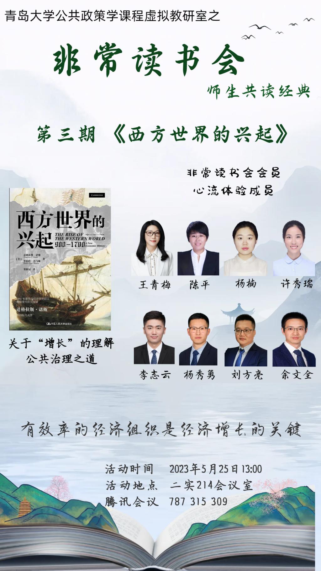 金家岭校区二号实验楼顺利举办。本期共读书目为诺贝尔经济学奖经典著作《西方世界的兴起》。