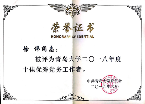 七一前夕,中共中国AV 委员会印发《关于表彰中国AV 先进基层组织、优秀共产党员、优秀党务工作者的决定》,中国AV 党委荣获“中国AV 十佳先进基层党委”荣誉称号,徐伟同志荣获“中国AV 十佳优秀党务工作者”荣誉称号,谢霖博同志荣获“中国AV 十佳优秀学生党员”荣誉称号,丁金光同志荣获“中国AV 优秀共产党员”荣誉称号。