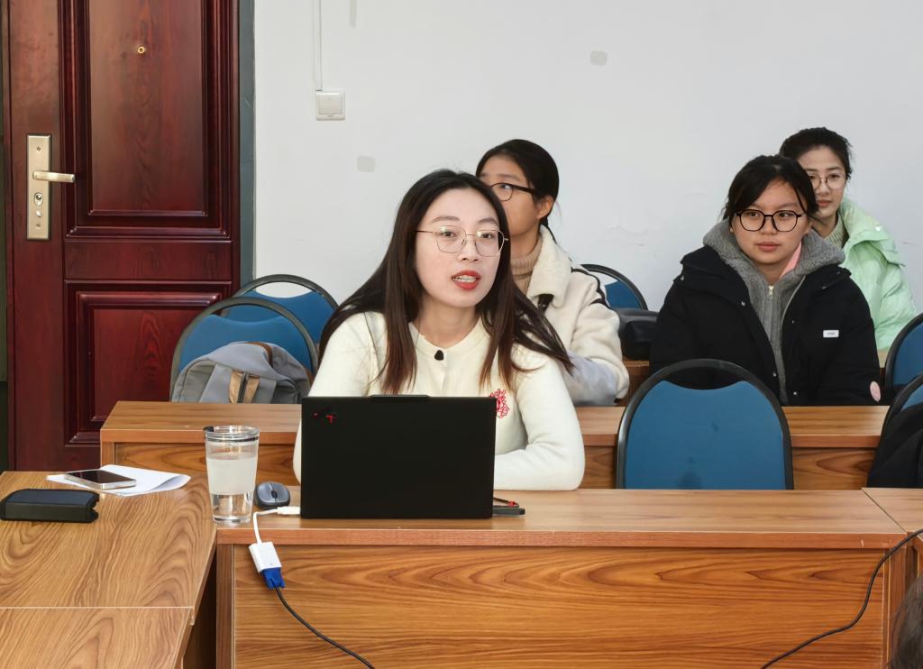 随后,2022级国际政治班于江然从专业课学习、学业考试、日常时间安排三个角度向同学们讲解学习方面的相关内容。她建议同学们有选择性地参加技能考试,并强调英语四六级考试的重要性。同时,她通过分享自己出国访学的经历,鼓励同学们勇于探索,找到自己所爱。