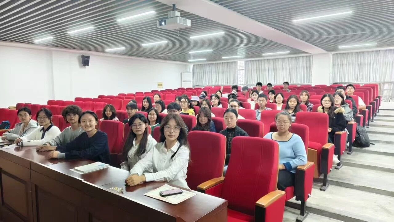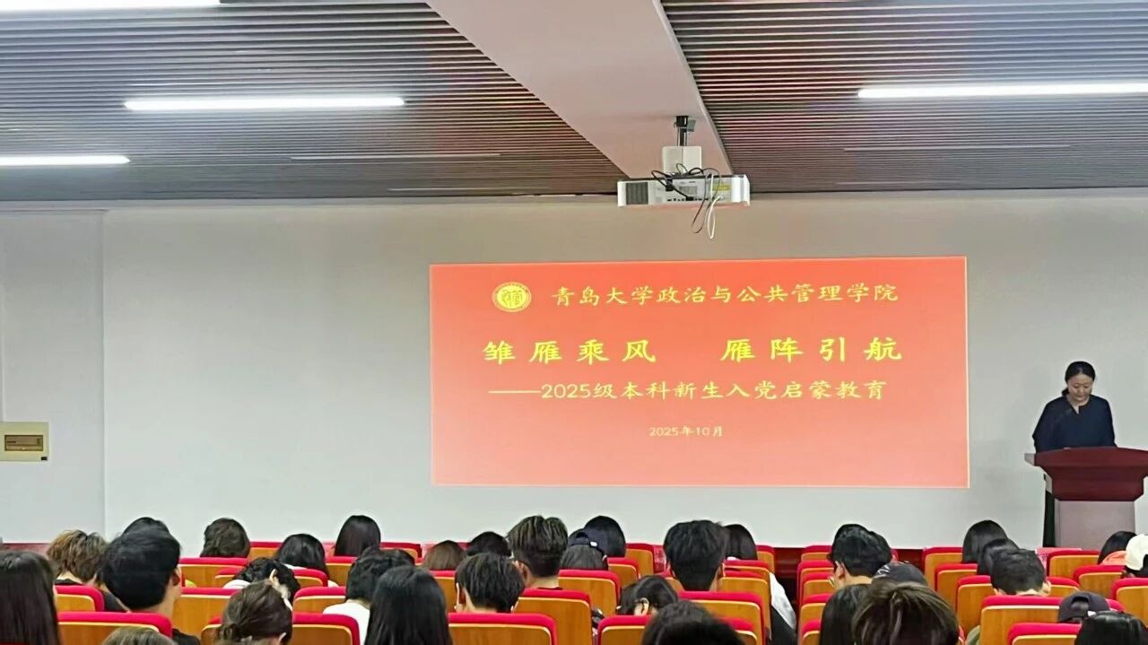 在图文中心三楼报告厅开展2025级新生入党启蒙教育活动。本次活动由2025级本科新生辅导员老师商玉坤主持,2025级全体新生参与。