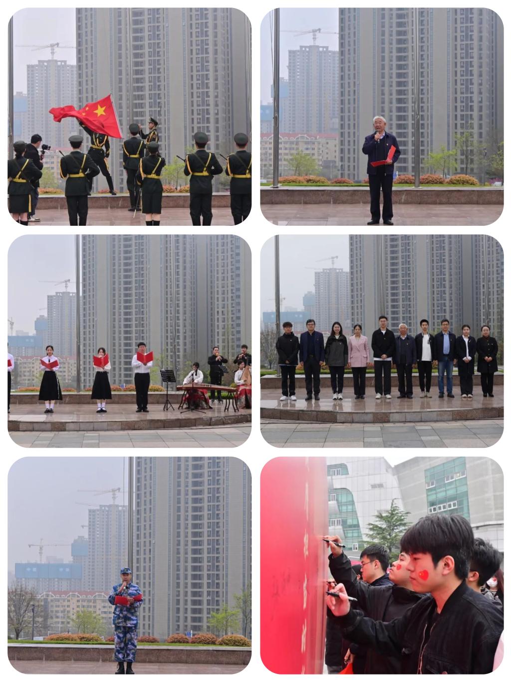 在金家岭校区国旗班的护卫下,在雄壮的《义勇军进行曲》中,五星红旗冉冉升起。随后,丁金光教授从专业角度以《坚持以政治安全为根本》为题,对“国家安全”进行了解读;在古筝、琵琶和葫芦丝的伴奏中,同学们带来饱含激情的朗诵——《国家安全,英雄精神永存》;之后,学院领导老师为新发展的党员团员佩戴了党徽、团徽;退役学生、2022级社会工作专业研究生季韬分享了自己的军旅经历,并向同学们发出自觉捍卫国家安全的倡议;最后老师和学生们在宣传展板上签字承诺,表达决心。