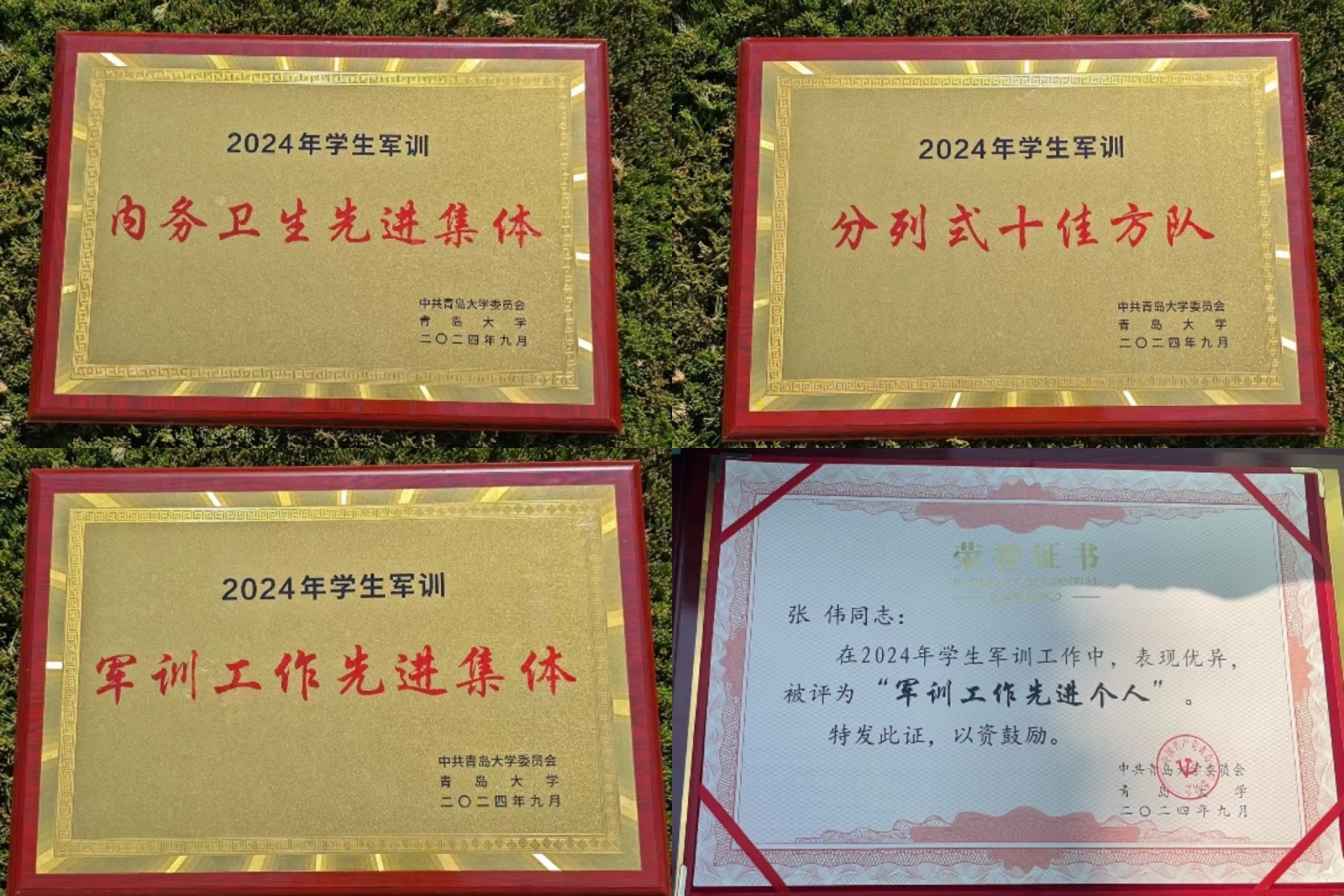 夺得军训荣誉大满贯,斩获“军训工作先进集体”“分列式十佳方队”“内务卫生先进集体”等多项佳绩,2024级辅导员老师张伟荣获“军训工作先进个人”荣誉称号。