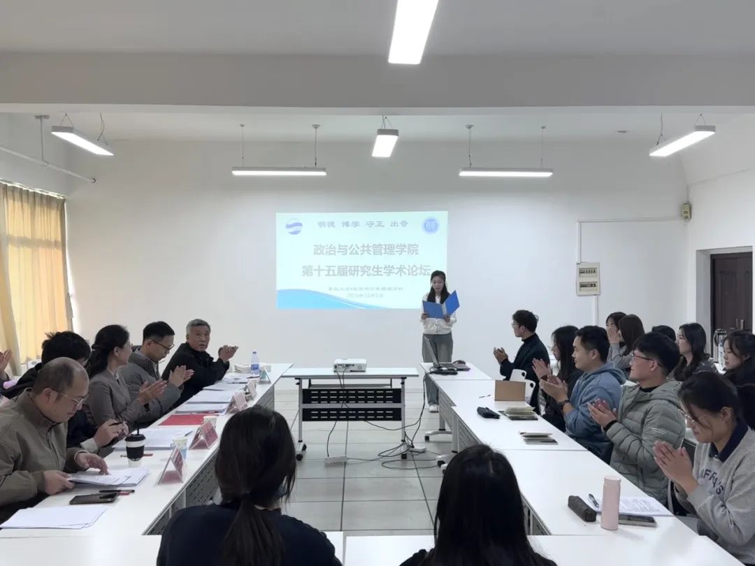 第十五届研究生学术论坛在金家岭校区二号实验楼405会议室顺利举行。本届论坛以“中国式现代化的政治逻辑与治理图景”为主题,从多个学科视角探讨全面深化改革进程中的理论与实践问题,具有重要理论价值与实践意义。副院长韩庆娜出席论坛并致辞,于正河、刘毅、李志云、赵一衡四位教师担任答辩评委。经论坛专家评审委员会初选共计13篇论文入围,论文作者与部分研究生、本科生参加论坛。论坛由学院研究生会江小涵主持。