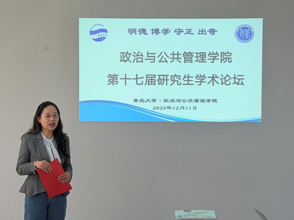 第十七届研究生学术论坛在金家岭校区二号实验楼405会议室举行。本届论坛以“中国式现代化的治理逻辑:理论阐释与现实路径”为主题,从多学科维度探析中国式现代化的理论及实践议题。副院长韩庆娜出席论坛并致辞,李志云、赵一衡、许秀瑞三位教师担任答辩评委。经论坛专家评审委员会初选共计8篇论文入围,论文作者与部分研究生、本科生参加论坛。论坛由学院研究生会张梦雯主持。