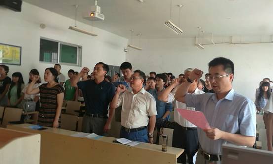 在金家岭校区2号实验楼313室举行了教师宣誓暨师德建设教育月活动启动仪式,学院全体教师和学生代表参加了本次活动。