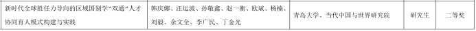 韩庆娜教授负责培育的研究生教学成果“新时代全球胜任力导向的区域国别学‘双通’人才协同育人模式构建与实践”荣获二等奖。这是学院首次荣获省级教学成果奖,标志着学院在教育教学改革、人才培养质量和教学创新能力等方面取得了阶段性、标志性成果。